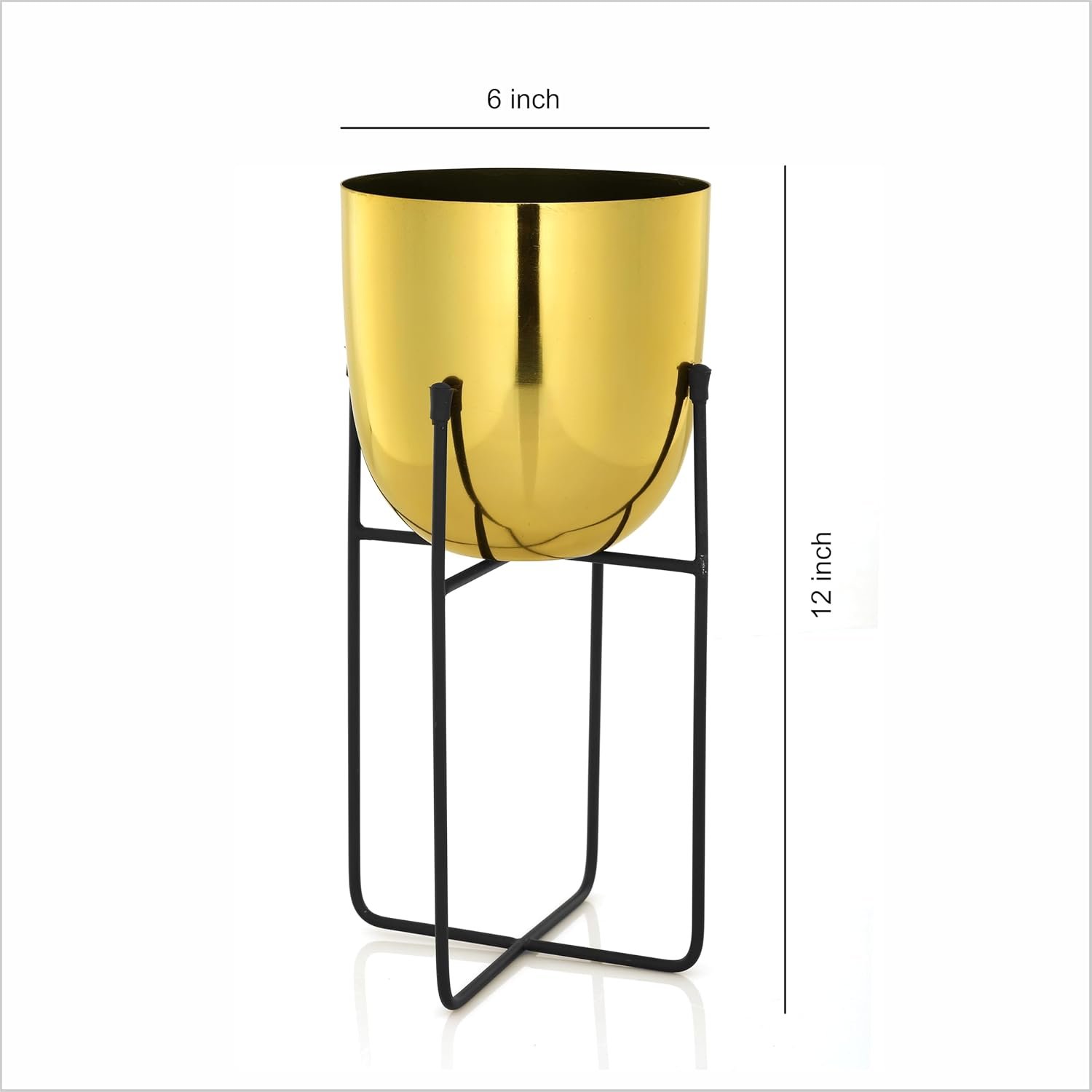 - Elevate Your Indoor Greenery: Transform your living spaces with the Rust & Shine Cachepot Planter Pot with Stand, meticulously designed to blend aesthetics with functionality. Crafted in a stunning Gold & Black color combination, this planter adds a touch of elegance to any environment, whether it's your office, home, living room, or drawing room.