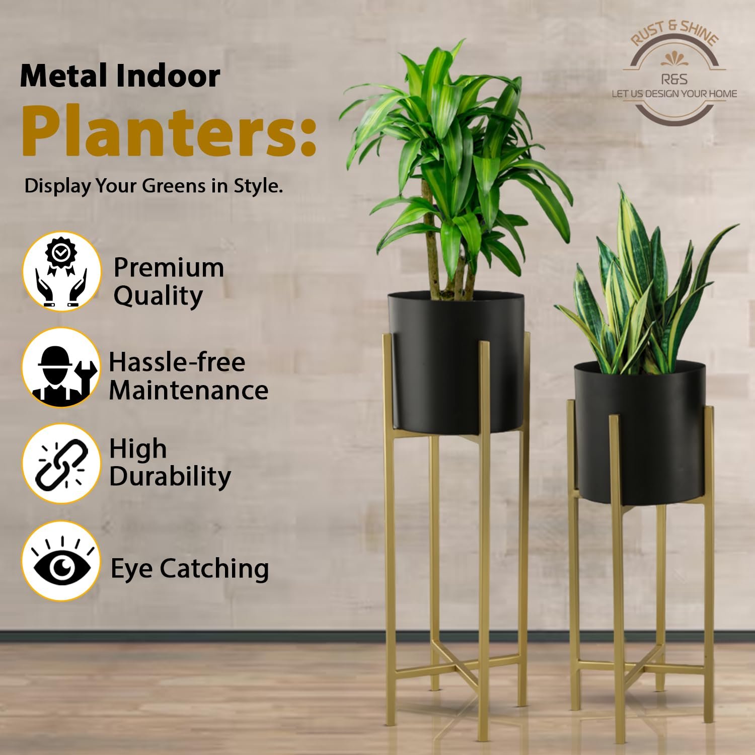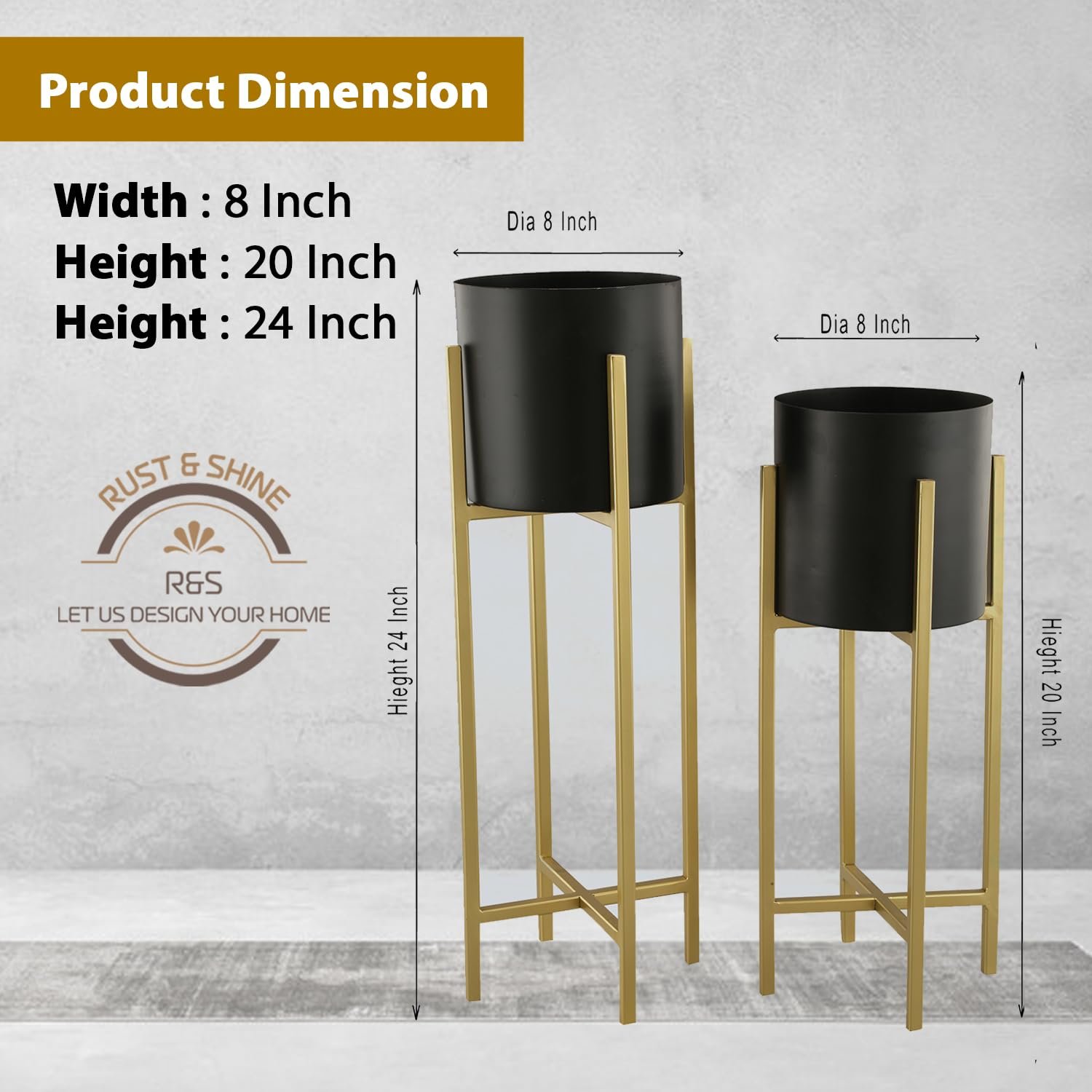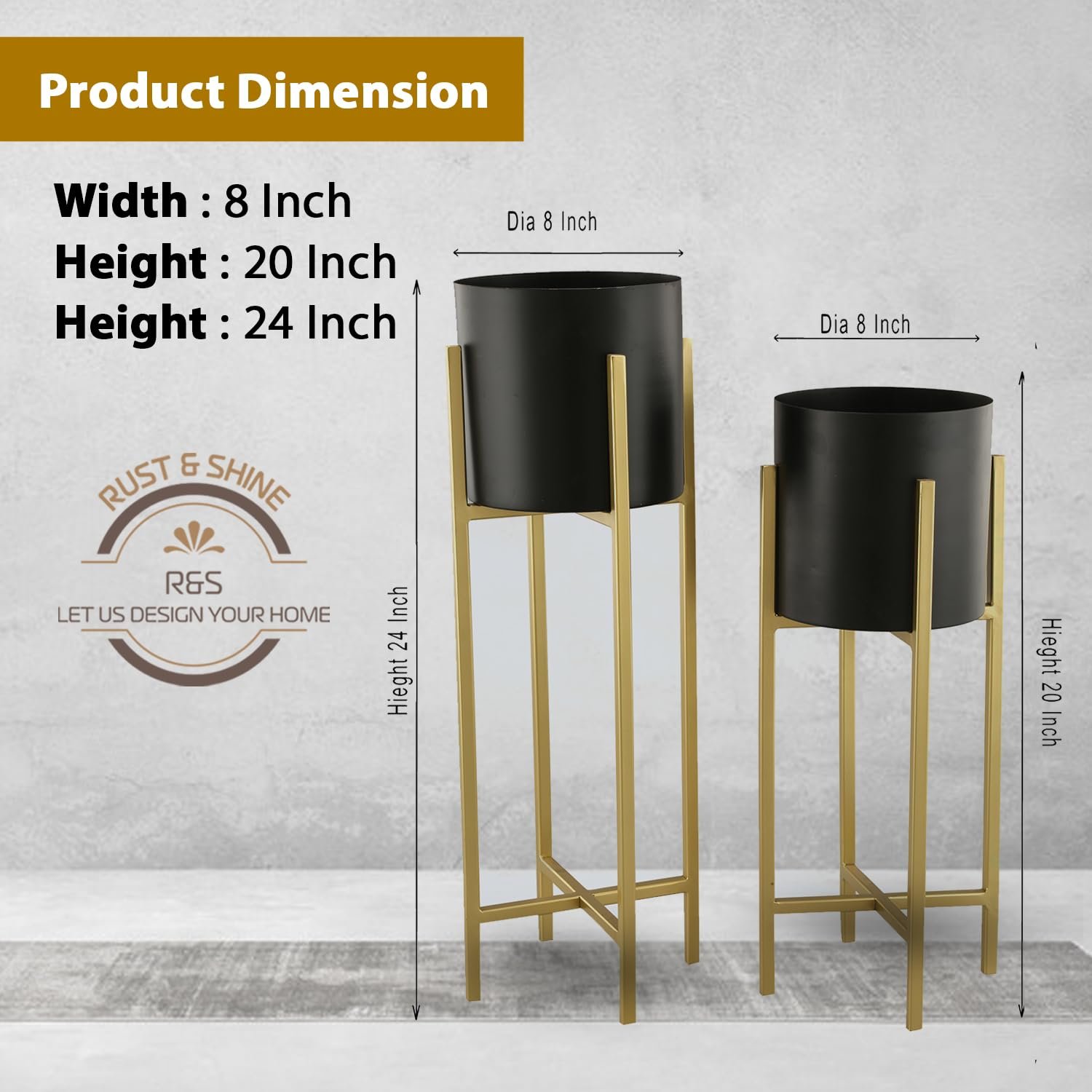 - Convenient Pack of Two: The Rust & Shine Bliss Planter Plant Stand comes in a convenient pack of two, featuring both small and large stands to provide versatility in size for dynamic placement in various spaces.