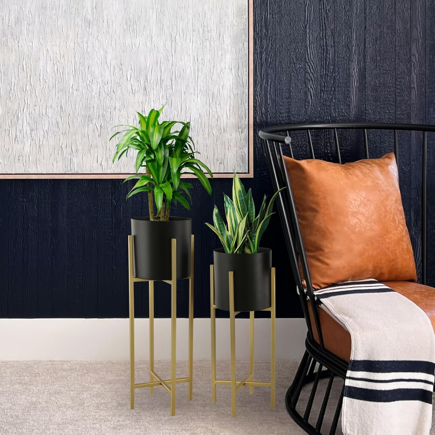 - Sophisticated Design: Adorned in a timeless black and gold color scheme, these plant stands exude elegance, enhancing the aesthetic appeal of any home or office decor with their chic and stylish appearance.